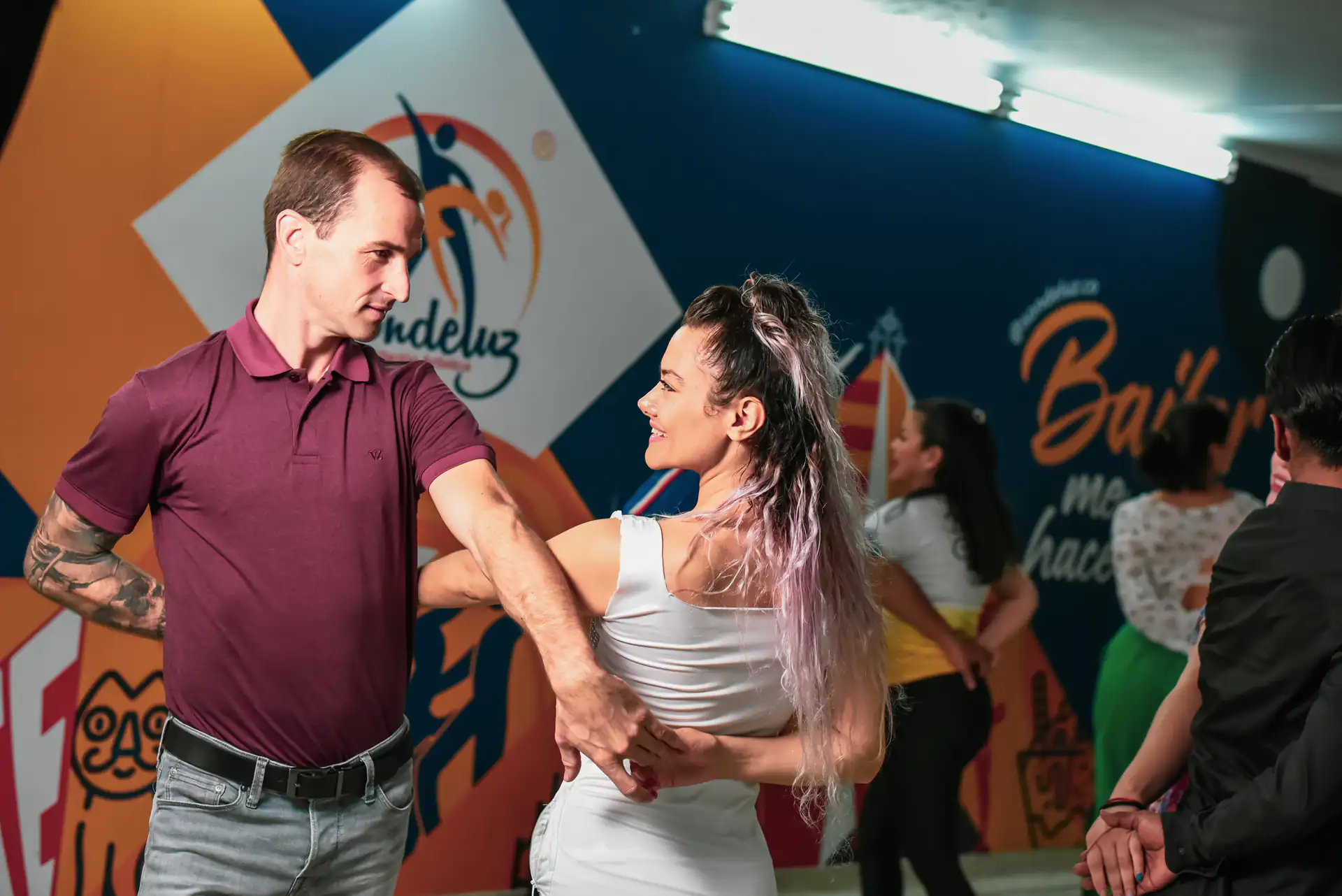 “Don’t just watch the magic—become part of it. At Sondeluz, we transform the world-famous speed and passion of Cali’s footwork into an accessible experience for everyone. From Salsa Caleña workshops for seasoned dancers to beginner-friendly salsa classes in Cali, you’ll learn from world-class champions in the heart of the salsa capital. Step into our studio and dance like a local.”